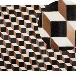 Geometrinen 3D kuviointi on mielenkiintoinen yhdistettynä perinteisempään lehmännahkaan. Rohkea aksentti rustiikkiseen tai perinteiseen kotiin. Matto on tehty kestävästä ja korkealaatuisesta nahasta, jotta siitä riittää iloa pitkäksi aikaa. Pohja on valmistettu huovasta, jotta se on mahdollisimman hellä lattialle.