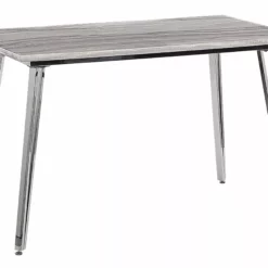 Kohota sisustustasi tällä tyylikkäällä ruokapöydällä, joka hurmaa kaikki vieraasi. Helposti puhdistettavasta MDF-levystä valmistettu pöytälevy on viimeistelty upealla marmorikuvioinnilla, joka antaa pöydälle ylellisen ilmeen. Hopeat, kiiltävät rautajalat takaavat vakauden, kun taas kumiset pehmusteet suojaavat lattiaasi naarmuilta. Muotoilunsa ja kuviointinsa ansiosta pöytä näyttää erityisen hyvältä moderneissa ja glamour-tyylisissä sisustuksissa.