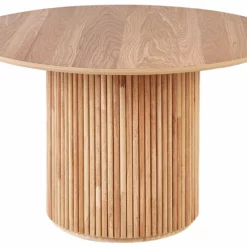 Tyylikäs, pyöreä ruokapöytä on käytännöllinen osa ruokailutilaa tai keittiötä, parantaen sen ilmettä ja lisäten tilaan perinteistä tunnelmaa. Leveä pöytälevy on valmistettu helppohoitoisesta MDF-levystä ja tukeva jalusta kestävästä ja vakaasta kumipuusta. Luonnollisen värinsä ja ainutlaatuisen muotoilunsa ansiosta pöytä voidaan yhdistää useiden erityylisten sisustustarvikkeiden kanssa ja se sopii monenlaisiin sisustuksiin, boho-tyylisistä rustiikkisiin tai skandinaavisiin. Pöytä tarjoaa sopivasti tilaa jopa neljälle hengelle ja useille tarjottaville.
