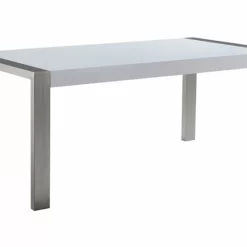 Tämän ruokapöydän puhtaat linjat tekevät siitä yksinkertaisen ja tyylikkään. Harjatusta ruostumattomasta teräksestä valmistetut jalat täydentävät kiiltävää, valkoista pöytälevyä kauniisti. Vakaa rakenne ja korkealaatuiset materiaalit takaavat pitkäikäisyyden ja vakauden. Paksu pöytälevy tarjoaa runsaasti tilaa jopa kuudelle hengelle ja useille tarjottaville. Yhdistä ruokapöytä erilaisten modernien tuolien kanssa täydentääksesi pöydän ilmettä ja saadaksesi sen sopimaan mihin tahansa nykyaikaiseen ruokailutilaan.