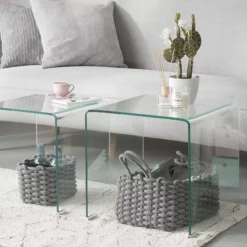 Järjestä olohuoneesi ja tuo tilaan tyylikäs koroste tämän sohvapöydän avulla. Leveän tasonsa ansiosta pöytä tarjoaa paljon tilaa erilaisille naposteltaville ja juomille sekä kynttilöille tai koriste-esineille. Pöytätason alle kätkeytyvän käytännöllisen säilytystilan ansiosta voit pitää koristetyynyt ja huovat käden ulottuvilla. Pöytä on valmistettu MDF-levystä ja kumipuusta, joiden ansiosta se on sekä kestävä että helppo puhdistaa. Luonnollisen värinsä ja ainutlaatuisen muotoilunsa ansiosta pöytä sulautuu loistavasti moniin erilaisiin sisustuksiin.